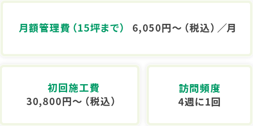 ▶15坪を超える場合は、現地調査のうえ月間管理費を無料で見積りいたします。